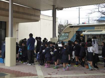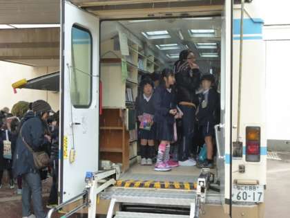 そんな中にも関わらず、自動車文庫には「返却」「貸出」する長い列ができていました。