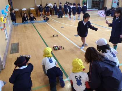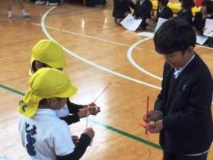 1年生が、1月から準備をし、幼稚園、保育園の子たちにゲームを楽しんでもらいました。