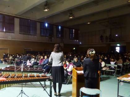 会場となった、広い本校の講堂は立ち見の人が出るほど、たくさんの観客であふれかえりました。