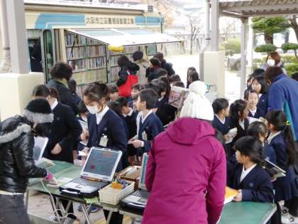 本校の体育館前に「自動車文庫」が巡回してきます。