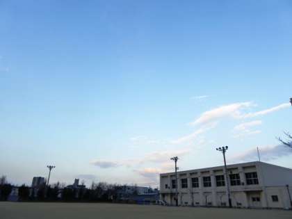 校長室前の温度計は7,6度、昨日より2度も高いのに暖かくなった印