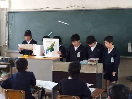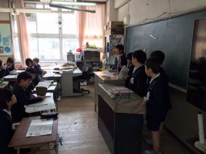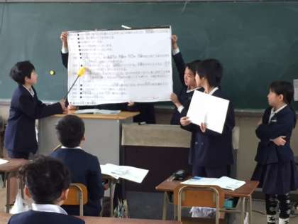 4年1組の教室では、班ごとに淀川のつけかえや、道頓堀の歴史などの発表会がおこなわれていました。