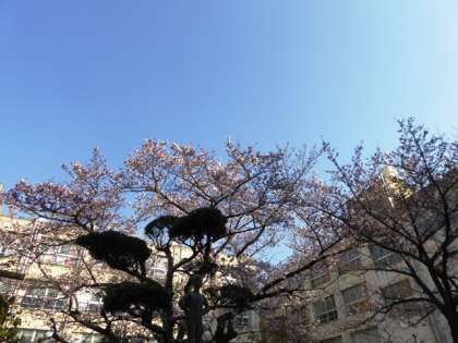 職員室前のサクラは早くも3〜5分咲き、気温がぐっと上がれば、開花も一気に進むことでしょう。