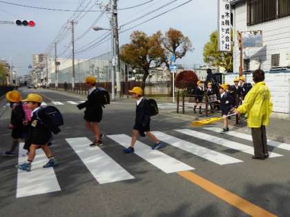 要所要所には、PTAならびに地域の方々が立ち、登校する児童の安全を見守ってくれました。