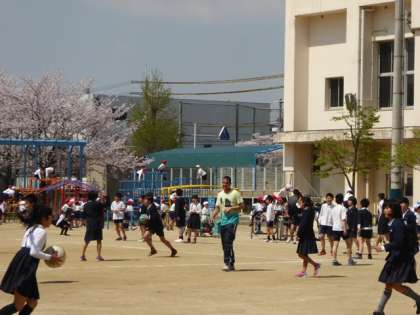 広い運動場も、休み時間にはたくさんの児童であふれかえっていました。