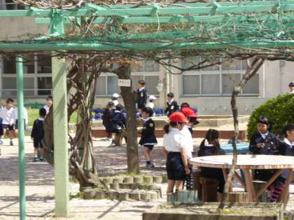 でも、1年生の児童ははまだまだ中庭をウロウロ。運動場デビューはもう少し先なのかな???