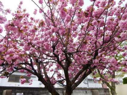 なりそうです。校内に1本だけある体育館横の「八重桜」。今が盛りと