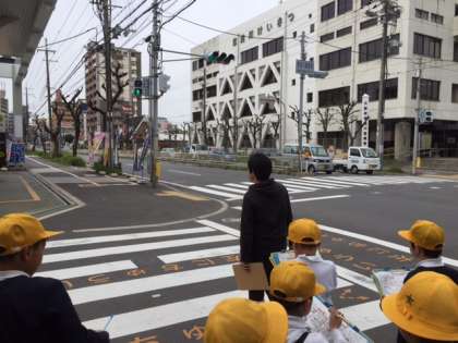今日の2〜4時間目に3年生は3つのグループに分かれて町たんけんをしました。