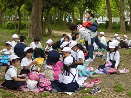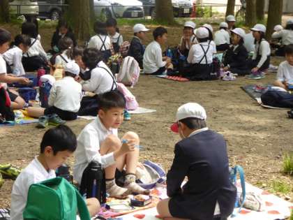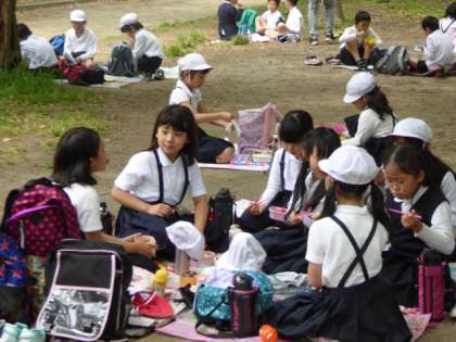 野外でみんなと食べるお弁当は最高のごちそうですね。