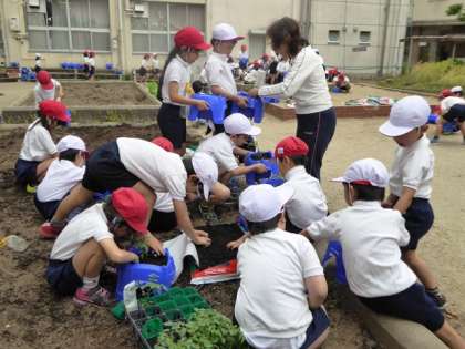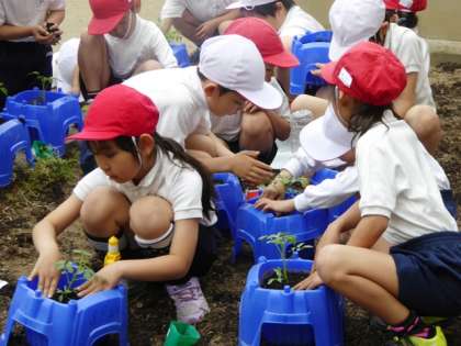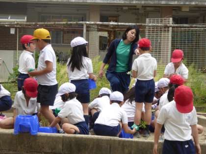 ちょっと立て込んだ仕事で校長室にこもっていても聞こえる子どもたちの元気な声、2年生の「生活科」の授業でした。