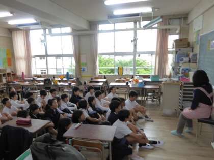 今日は、今年度初めての読み聞かせ、6年生対象です。