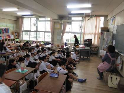 ざわつくこともなく、しっかりと読み聞かせに集中、次々に展開していく童話の世界に引き込まれる子ども達の目は輝いています