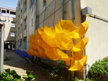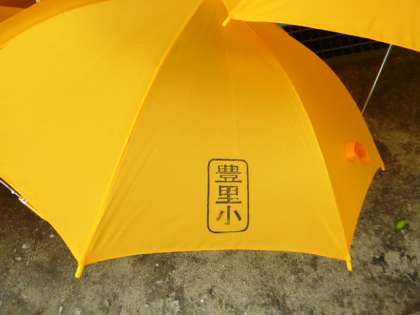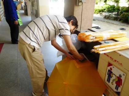 子どもたちのために有効に活用してくださいと、50本の黄色いカサが寄贈されました。