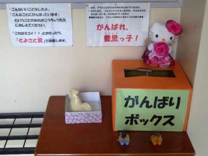 でも、校長ひとりの視点はせまくてせまくて・・・(笑)。そこで自己申告制の「がんばりボックス」を校長室前に設置しました。