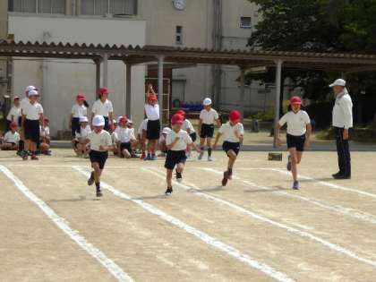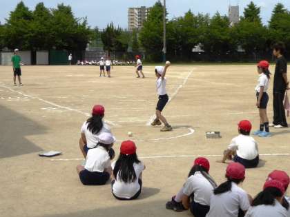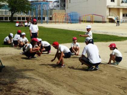 1時間目は先陣を切って4年生が運動場で「スポーツテスト」