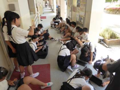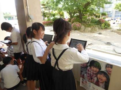 タブレットを使っての社会科の時間、「沖縄の住宅を調べよう」でした。