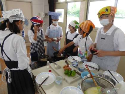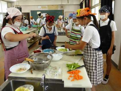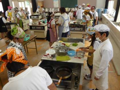 6年生の家庭科の授業、調理実習「朝食にあうおかずをつくろう」