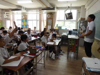授業は3人の担任(尾小谷先生、杉浦先生、中山先生)と鈴木先生の4人で担当し、グループごとに学習内容に少し違いを持たせ、一人ひとりの理解が深まるように工夫した授業です。