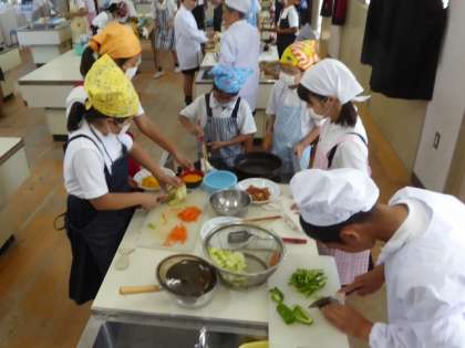 「塩・コショウ」で味付けのはずが、不思議なくらい味見をしない。でも、見て回っていると、どのグループも圧倒的に薄味、健康志向かな(笑)。
