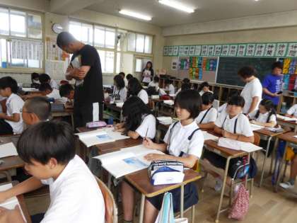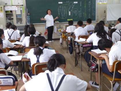 しっかりとした授業案を作成し、管理職を含む複数の教員が授業を見学します。授業が終わった後は、授業に関しての批評・高評です。