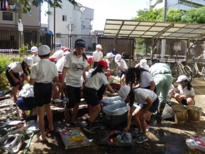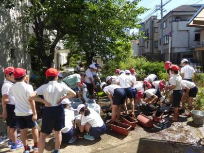 栄養たっぷりの園芸土や腐葉土は水になじんで真っ黒。子どもたちの汚れ方も半端ではありませんでした(笑)。