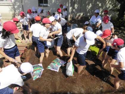 先週の、5年1組と2組に続き、「豊里水田」に3組も参戦。