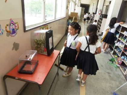 「校長せんせぇ、アゲハがすっごいところで孵化したんです。」