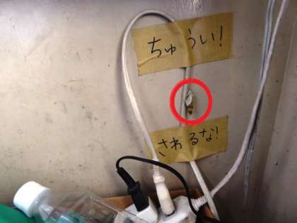 廊下で飼育していたアゲハの幼虫が逃げ出し、この延長コードでサナギになったみたいで、気づいた子どもたちもびっくりです。