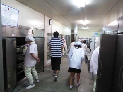 やっと給食室で、給食を受け取り、さあ、みんなが待つ教室へ。