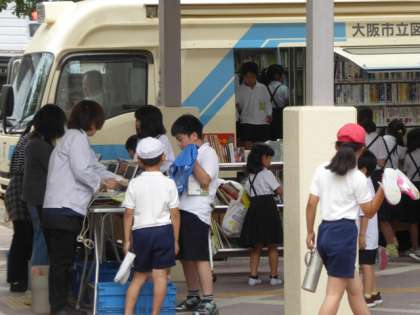 自動車文庫の横にたっていると、何人もの1年生から同じ質問を受けました。