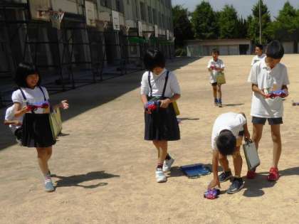 運動場に大好きな体育を見に行こうかなと思ったら、理科室から続々と子どもたちが・・・