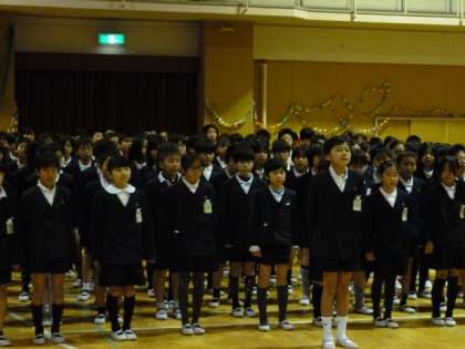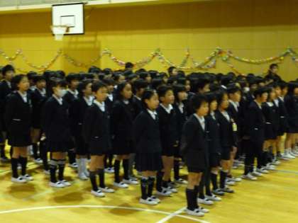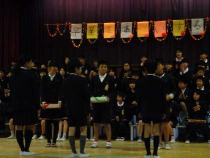 3枚目:在校生からの記念品授与(分団員の寄せ書き)
