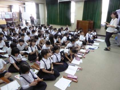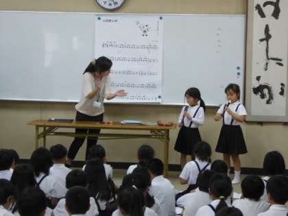 のぞいてみると、3年生3クラス合同の音楽の時間でした。