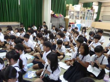 多目的室から軽やかな笛の音 〜3年生合同音楽〜