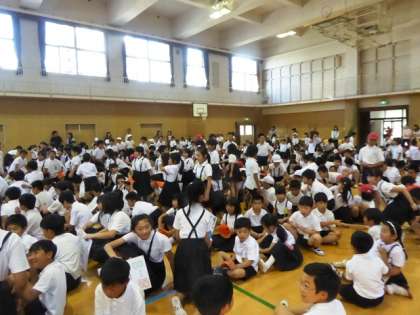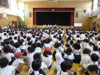 今日は講堂での集会です。