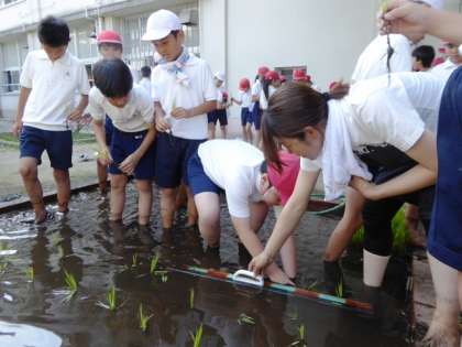 はじめての土の感触? 〜「豊里水田」の田植え〜