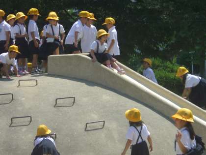 そして、公園にあるものをみんなで確かめたり、ゴミを捨てないことなどのルールや遊具の使い方などを学んだりしました。