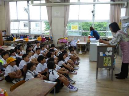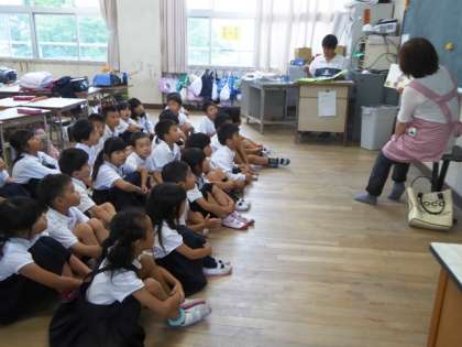 保護者や地域の方々で結成するボランティアグループ『えほんばたけ』さんが各学年順番に読み聞かせを行ってくれています。
