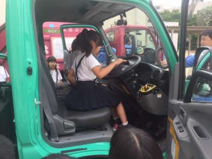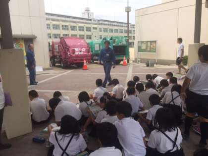 今日は環境事業局の方が来校していただきパッカー車を使っての出前授業です。