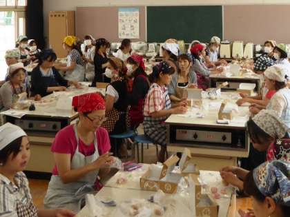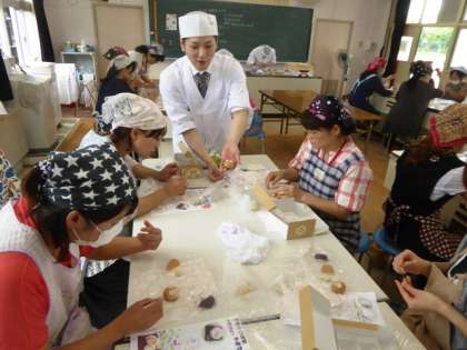 講師の先生から手順を教えてもらい、お店さながらの和菓子作りに励んでいました。