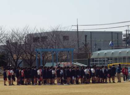 1・2・3年生が5時限で授業が終わるため、地震発生時間より少し早い、午後2時25分からの1分間、東北大震災で犠牲になった人たちのご冥福を祈り、全校一斉に黙とうをささげました。
