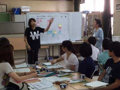 放課後の研究討議会では参観した教員が持ち寄った感想を集約し、全体の前で発表します。