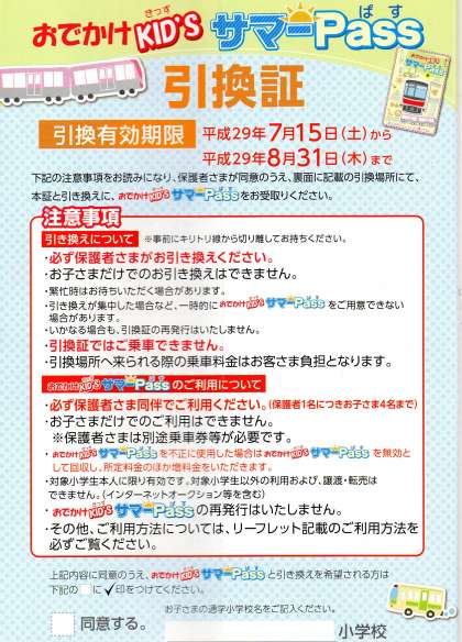 地下鉄各駅やバス営業所などに、保護者が持参し「サマーパス」