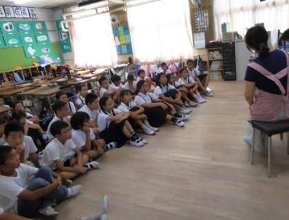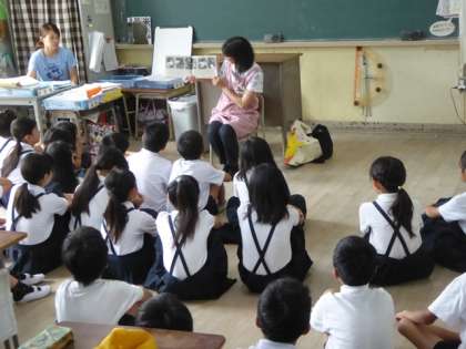 保護者や地域の方々で結成するボランティアグループ『えほんばたけ』さんが各学年順番に読み聞かせを行ってくれています。