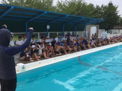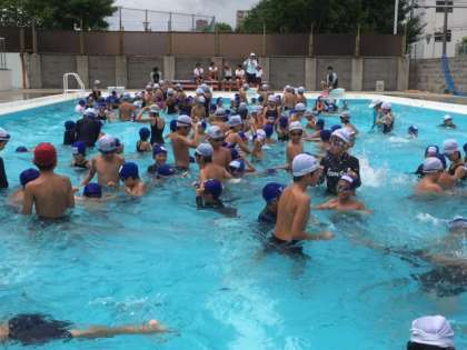 ここでも200名が一斉にプールで活動したので、ご覧のとおり芋の子を洗うような混雑ぶりです。