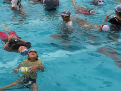 ※「くつ」をはいての着衣泳は水質汚染の関係から実施していません。