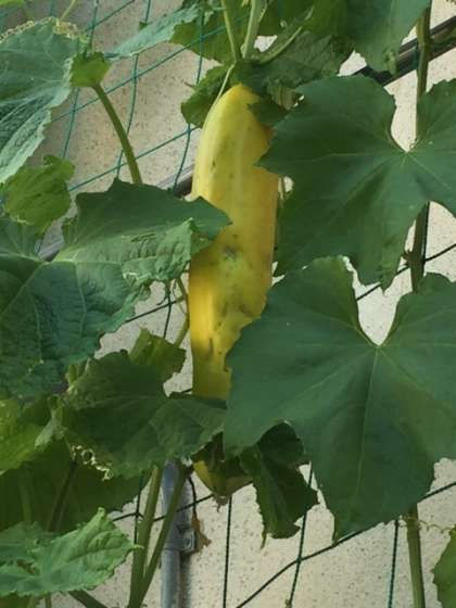 「種を採るためにそのまま大きくしています」とのこと。2学期には授業で「きゅうり」の種が見られると思います(私も見たことないなあ)。ちなみにまだ小さいですが、「千成瓢箪」も実をつけていました。