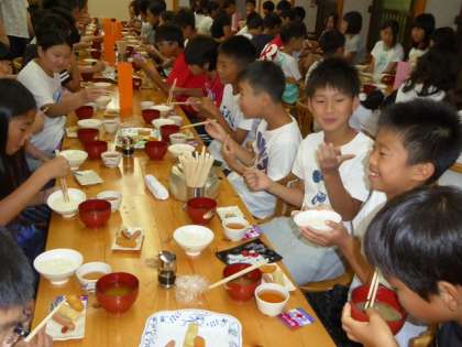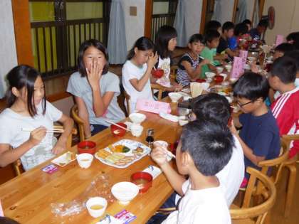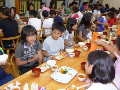 子ども達には疲れと食欲は別もの。最後のプログラム「オリエンテーリング」に備え、朝からしっかりとお代わり、エネルギー充填です。