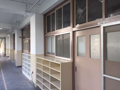 先日お伝えした「管理作業員の合同作業」による東校舎1階の塗装工事ですが、予定の期間までに作業が終了せず、かなりの積み残しが出ました。