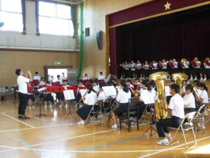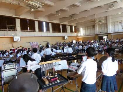 本校の卒業生もたくさん在籍しており、体育館に詰めかけた満員の来